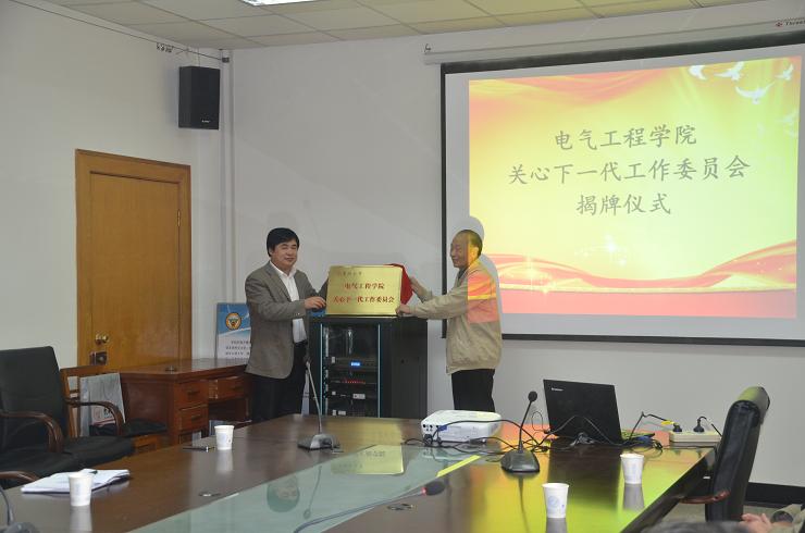 2013年10月31日,太阳成集团tyc33455cc关心下一代工作委员会正式挂牌。校关工委常务副主任吴介一、校关工委常务副秘书长张楠等同志出席仪式,太阳成集团tyc33455cc经理黄学良、党委书记冯建明、副书记杨蕙及公司其他关心下一代工作委员会成员、教工党支部书记、青年教师代表等参加。