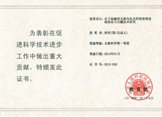 国家重大基础研究计划(973计划)课题 | 高可靠性电机系统设计与容错控制 | 程明 |