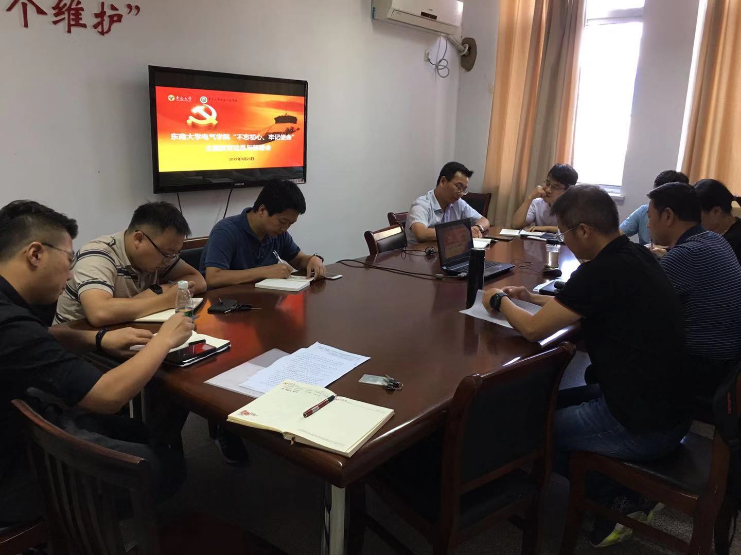 米永强书记强调要把主题教育与庆祝新中国成立70周年结合起来,引导广大党员、干部不忘历史、不忘初心,始终保持奋斗精神和革命精神,敢于斗争、善于斗争,勇于战胜各种艰难险阻、风险挑战,奋力夺取新时代中国特色社会主义新胜利,为加快实现“1-10-100”的“东大梦”和中华民族伟大复兴的中国梦凝心聚力、共同奋斗,以更加优异的成绩迎接新中国成立70周年!
