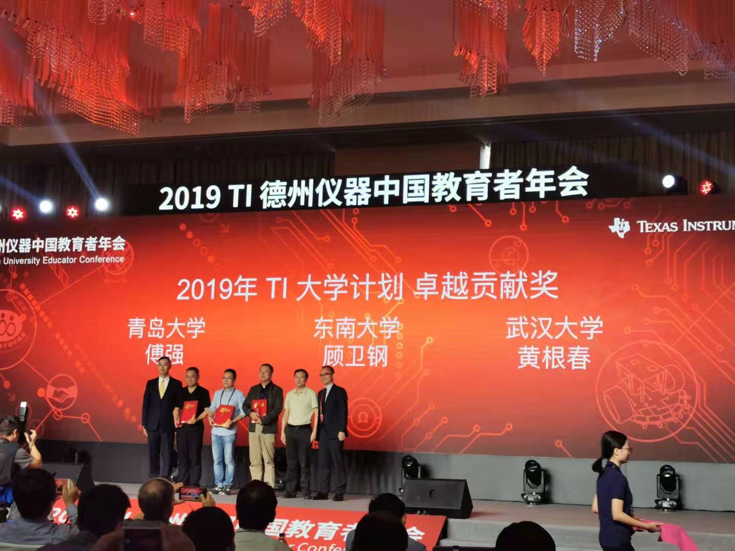 全球知名的半导体企业美国德州仪器(TI)中国教育者年会于11月8-10号在珠海召开。公司胡仁杰教授、顾卫钢博士应邀出席,并被授予2019年TI大学计划卓越贡献奖。该奖项是为表彰在TI大学计划及2019年全国老员工电子设计竞赛中作出突出贡献的教师而设立的。