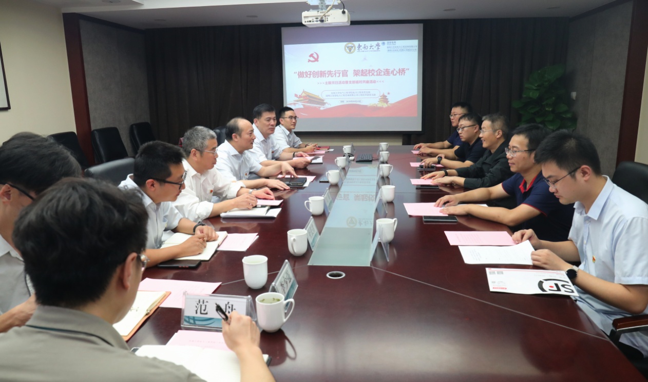 徐青山副经理重点介绍了公司科研水平、员工动态、新技术应用等情况。希望利用此次支部结对共建活动与国网江苏电力工程咨询公司建立研究生合作机制,为企业科技创新水平不断提升人力支援和理论研究支撑。