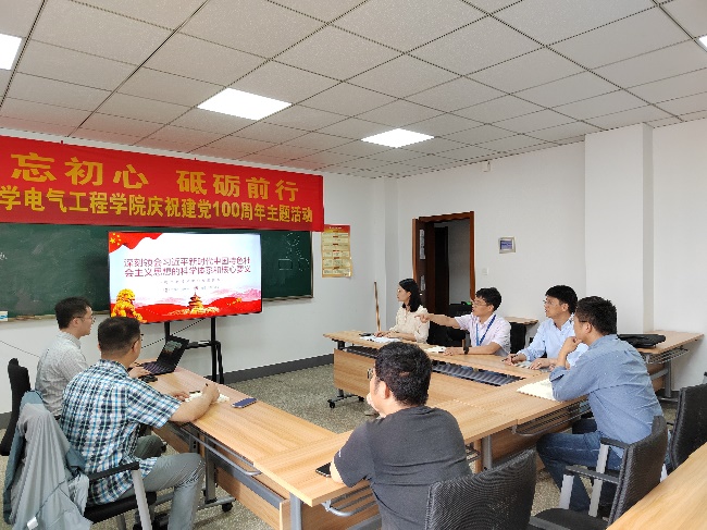 2023年5月31日,电气新技术中心党支部在四牌楼校区校西综合楼519党员活动室开展主题教育专题党日活动,学习贯彻习近平新时代中国特色社会主义思想。本次活动由支部书记仲林林主持,组织委员龙寰记录,应到8人,实到7人。活动议程包括重温入党誓词、支部书记讲党课、习近平新时代中国特色社会主义思想主题教育学习心得交流与研讨、唱《国际歌》等。在支部书记讲党课环节,仲林林带领支部党员围绕深刻领会习近平新时代中国特色社会主义思想的科学体系和核心要义,开展了专题学习。在交流研讨环节,高丙团、吴在军、陆帅、沈湛、何嘉弘、龙寰等同志先后发言,畅谈习近平新时代中国特色社会主义思想主题教育学习体会,并结合团队建设、人才培养各抒己见,仲林林最后总结发言。各位支部成员纷纷表示,要坚持学以致用、知行合一,将习近平新时代中国特色社会主义思想与个人业务工作、中心和公司的学科发展相结合,凝心聚力,勇毅前行。