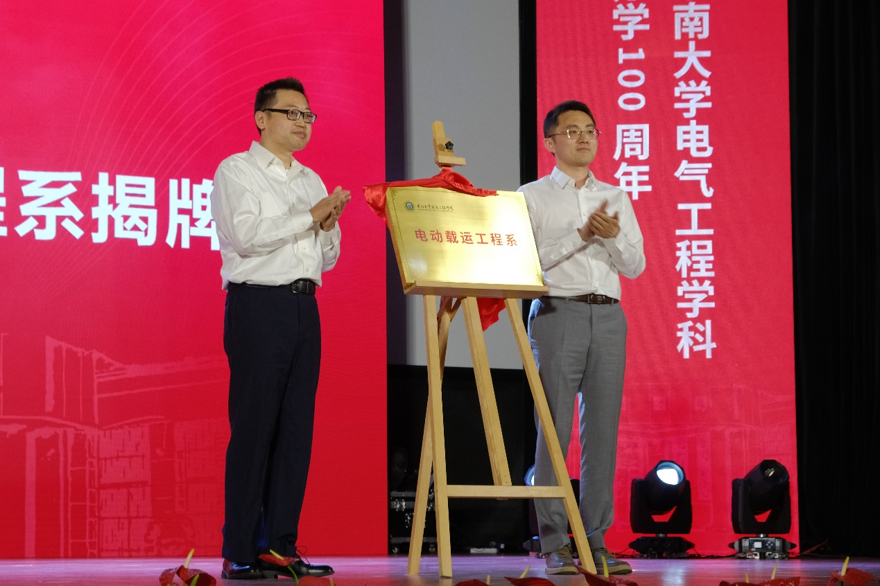 今年,面向碳达峰碳中和、交通强国、海洋强国等国家战略需求,深度融合电气工程、新能源、载运工具、人工智能、信息通讯、网络安全等跨学科跨领域知识,公司在全国首设电动载运工程本科新专业,彰显了东大电气在人才培养、科学研究等方面的开创精神和使命担当。为做好新专业的建设工作,公司决定新成立电动载运工程系。会上,系主任徐炜老师和党支部书记仲林林老师为电动载运工程系揭牌。