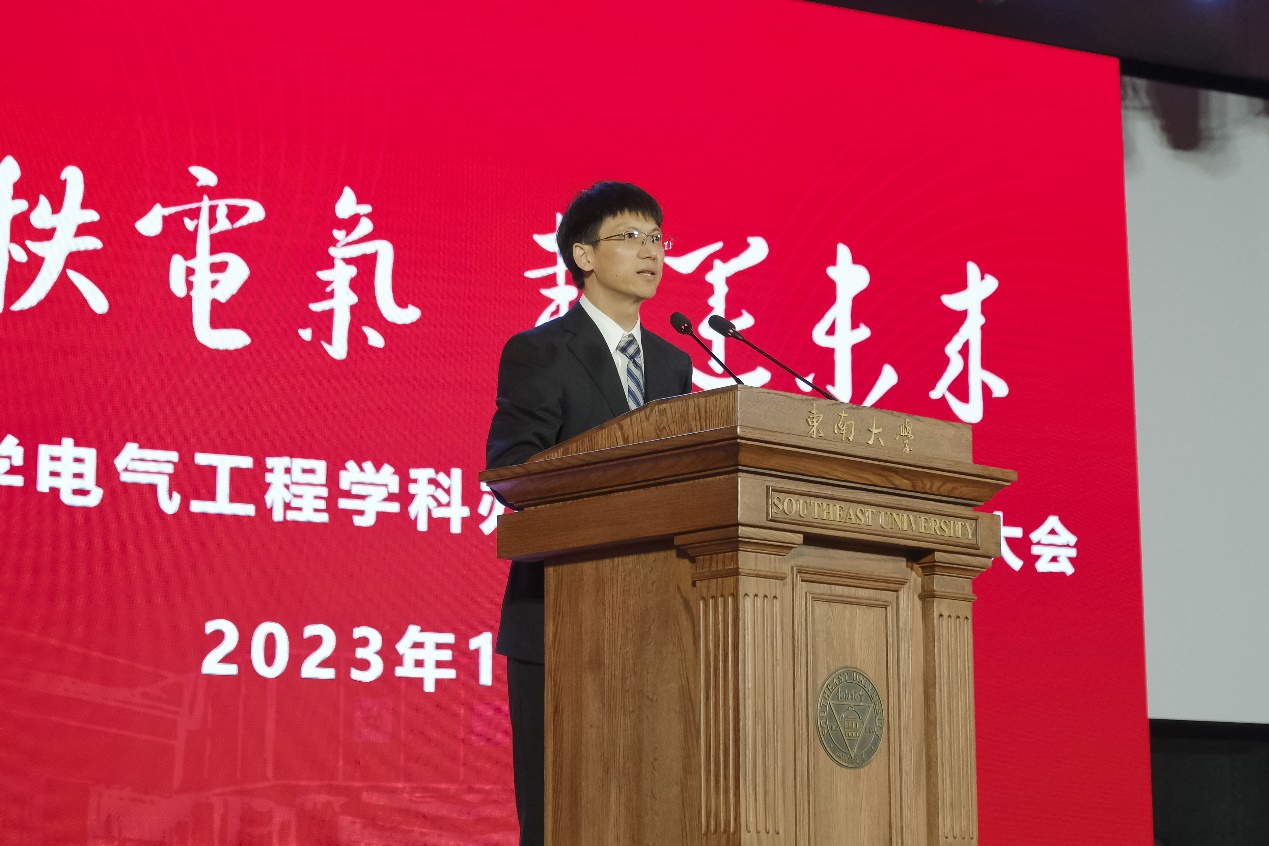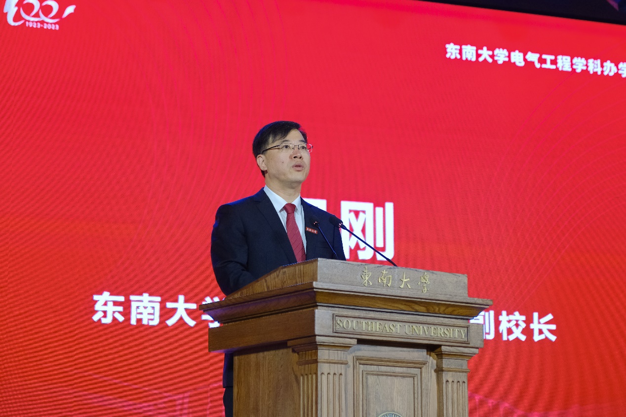 中国电工技术学会理事长杨庆新代表学会致辞。他充分肯定了东大电气一直以来“以科学名世,以人才报国”的办学理念,对电气公司学科发展、平台建设、团队力量、人才培养等方面的提升与跨越给与高度评价。