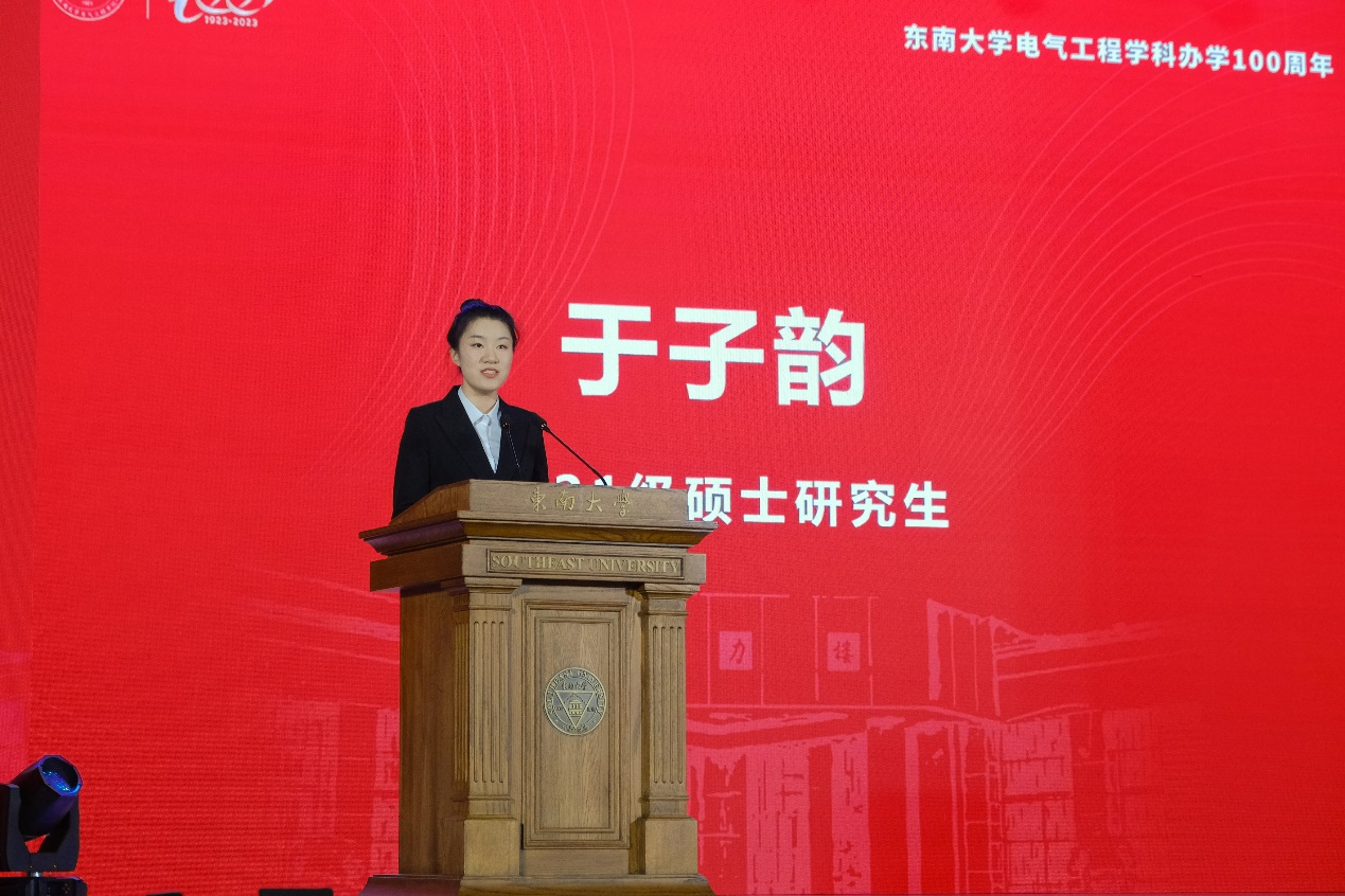 百年育人,孜孜不倦。国家教学名师胡仁杰教授、国家杰出青年基金获得者顾伟教授、国家级青年人才王激尧教授代表公司教师发言。2021级硕士研究生于子韵代表在校生发言。