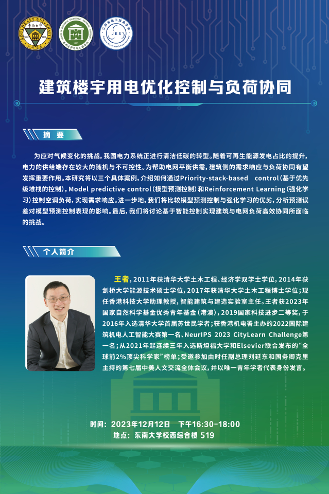 讲座预告 | 建筑楼宇用电优化控制与负荷协同