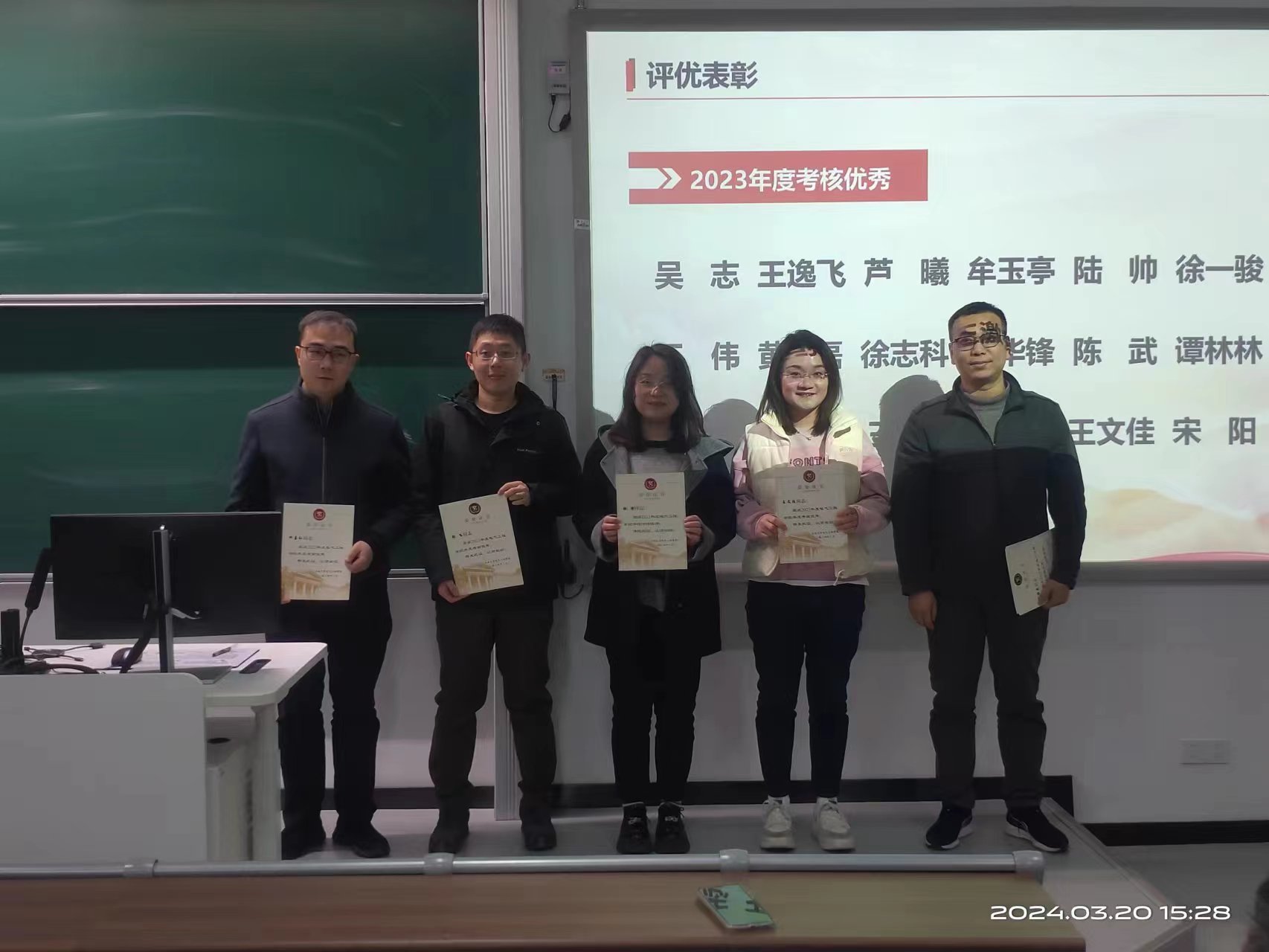 接着,举行2023年度评优表彰,公司领导班子给获得年度考核优秀、积分考核优秀、班主任考核优秀、先进基层党组织、优秀党务工作者的组织或个人颁发荣誉证书,向取得优异成绩受到表彰的教职工表示祝贺,向为公司发展付出辛勤劳动的教职工表示感谢。