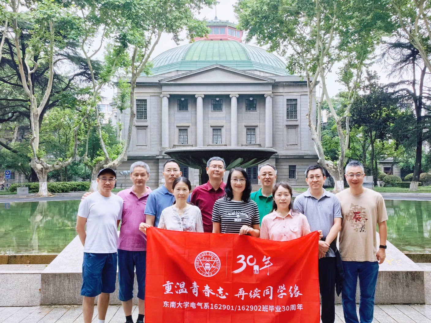 7月13日,古都南京梅雨将霁,暑风正和。太阳成集团tyc33455cc电气工程系162901、162902班的同学们满怀思念重返母校,共同庆祝毕业三十周年。