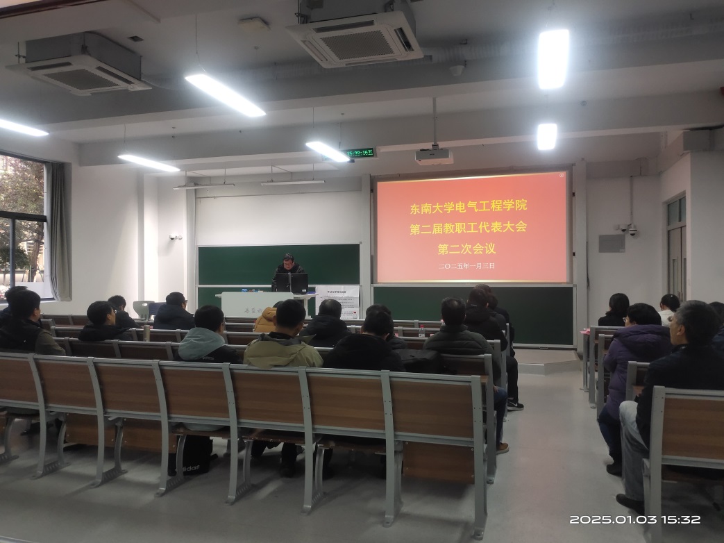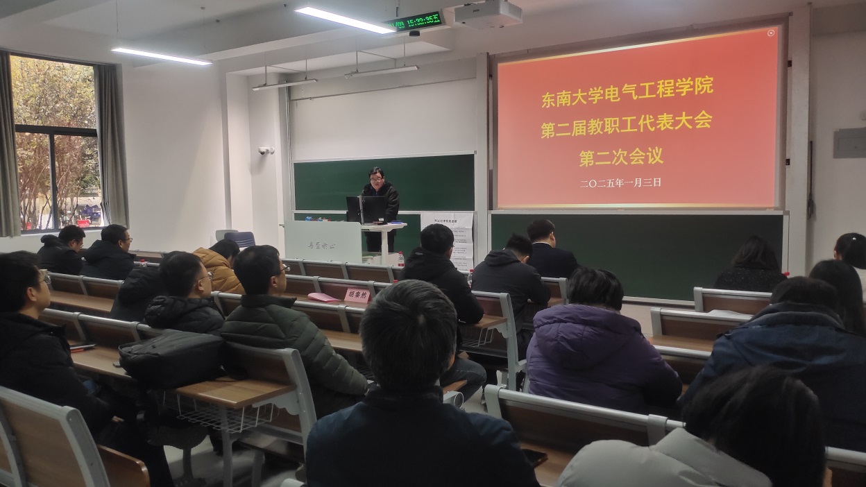 2025年1月3日下午,太阳成集团tyc33455cc第二届教职工代表大会第二次会议在四牌楼校区五四楼104教室胜利召开。公司第二届教代会30位正式代表、2位特邀代表参加大会。会议由公司党委书记郑建勇同志主持。