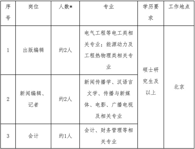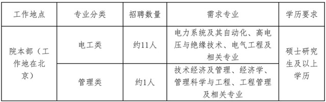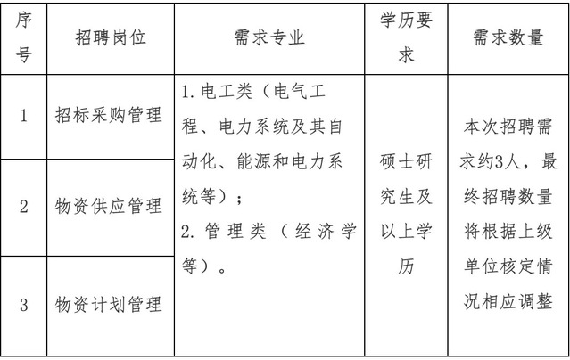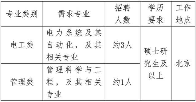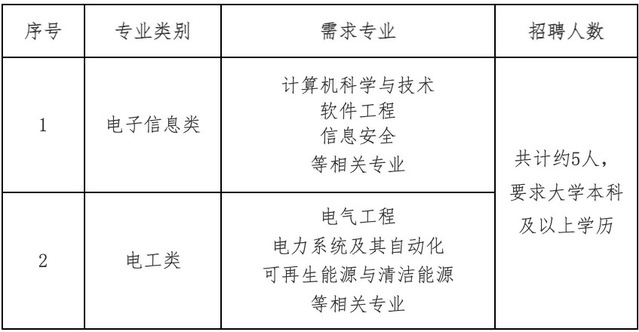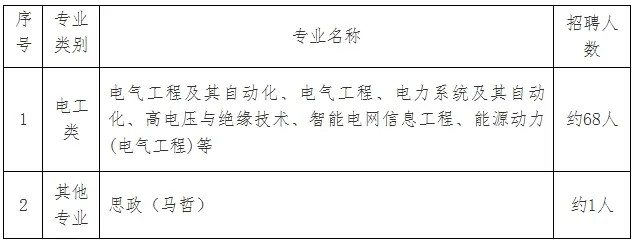 包括电力系统及其自动化、电气工程等电工类相关专业。招聘需求人数约2人,最终招聘数量将根据上级单位核定情况相应调整。