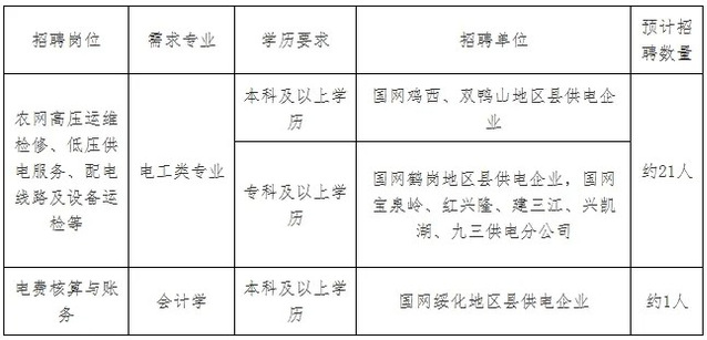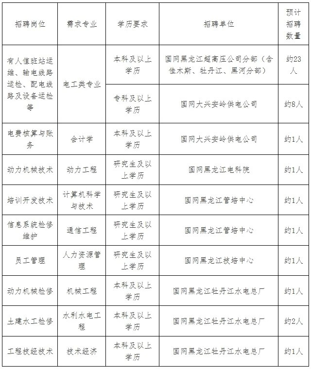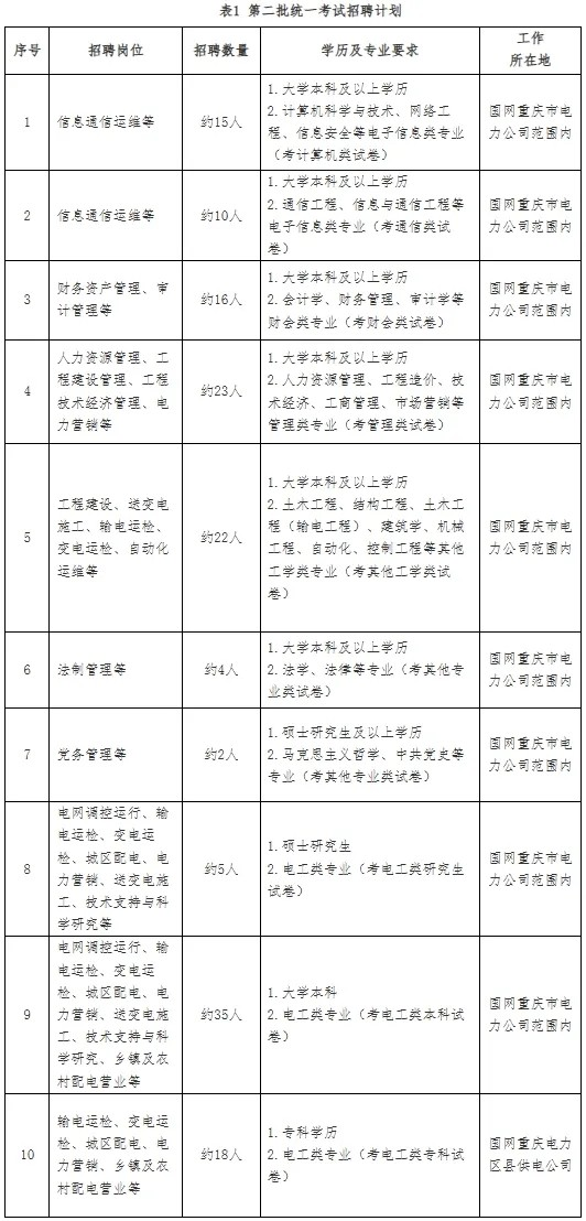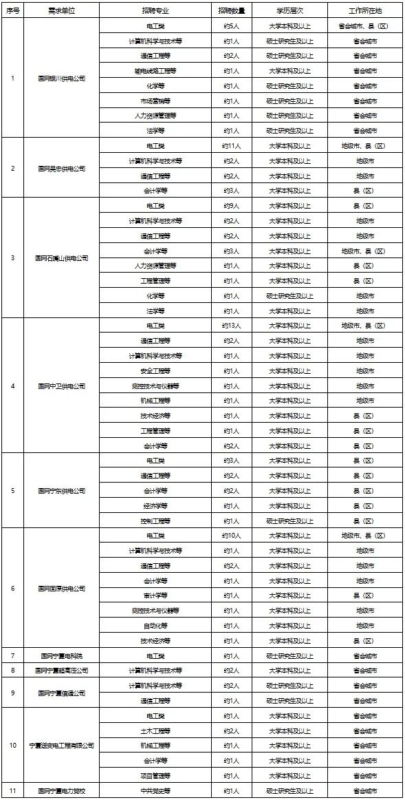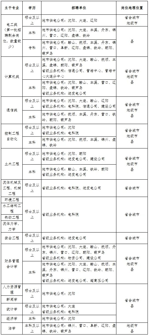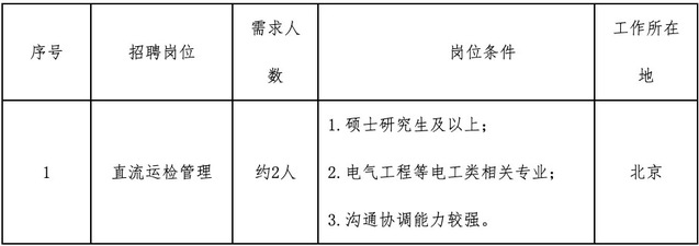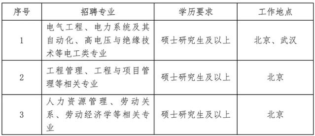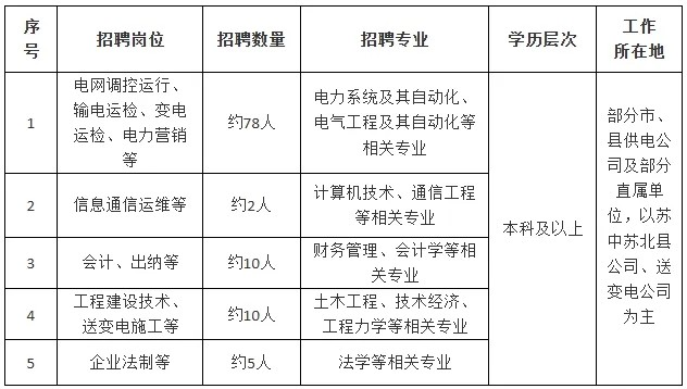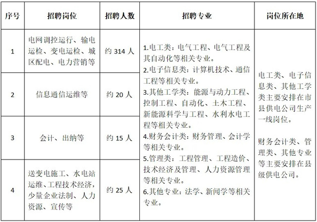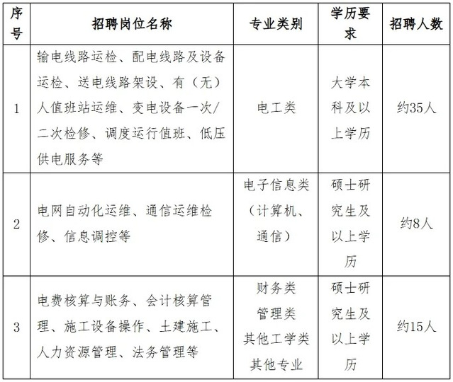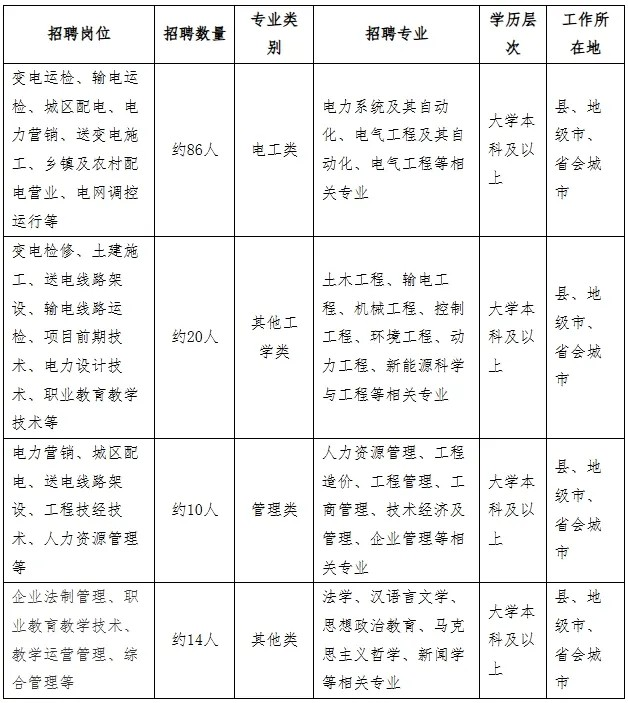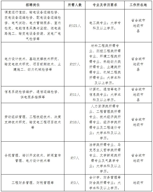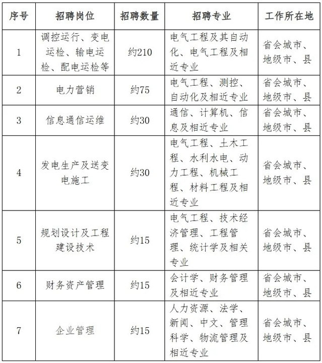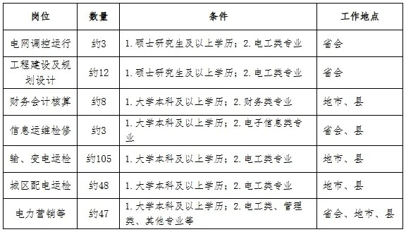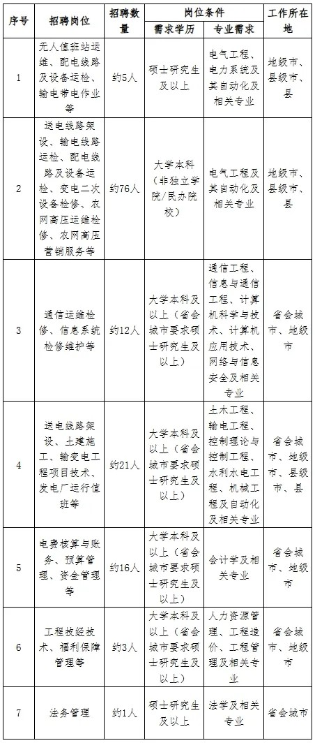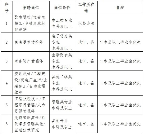 2.招聘岗位:规划、建设、运行、运维检修、营销、信息通信、物资和培训教育等专业一线岗位。