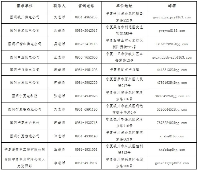 注:上述电话和邮箱仅在报名期间受理应聘毕业生本人咨询国网天津市电力公司招聘政策。请有意应聘国网天津市电力公司的毕业生密切关注国家电网有限公司人力资源招聘平台招聘信息及最新公告。