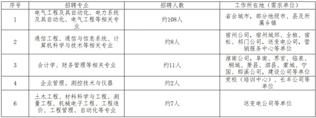 招聘专业指主修专业(不包含辅修专业)。招聘专业主要为电工类专业,少量招聘非电工类专业。根据2025年第一批招聘毕业生流失情况,进行少量补招。最终招聘数量将根据上级单位核定情况相应调整,主要招聘计划如下: