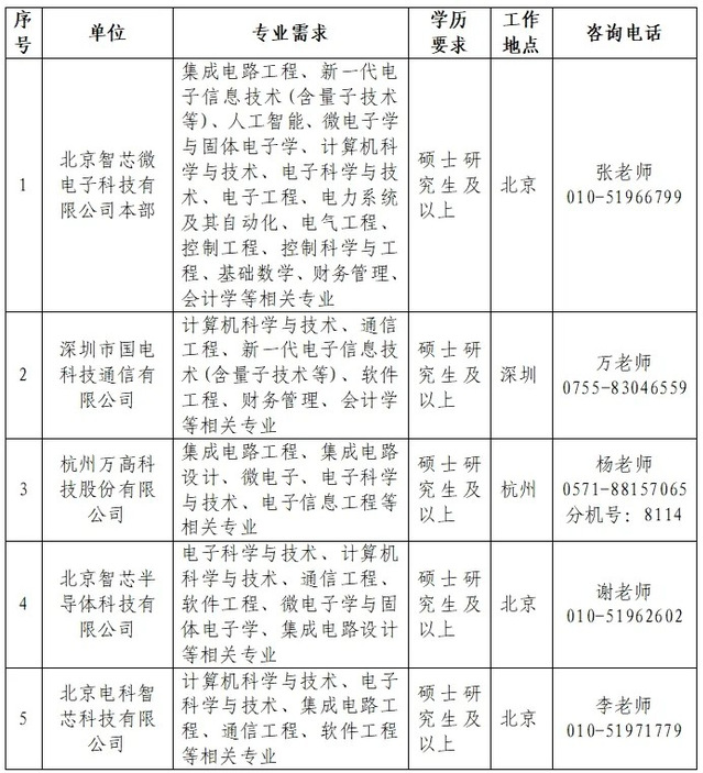 根据招聘需求,智芯公司2025年第二批招聘毕业生计划数量约为28人,最终招聘数量将根据上级单位核定情况相应调整。招聘专业以电工类、电子信息类专业为主,适当招收少量其他工学类、财务类及其他专业毕业生;招聘岗位以技术研发类为主,其他岗位少量。各单位招聘需求详情如下: