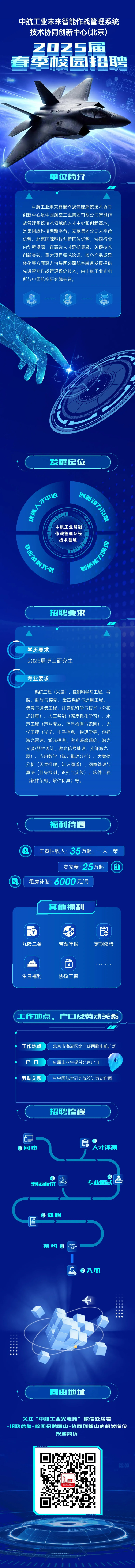 中航工业未来智能作战管理系统技术协同创新中心2025届春季校园招聘