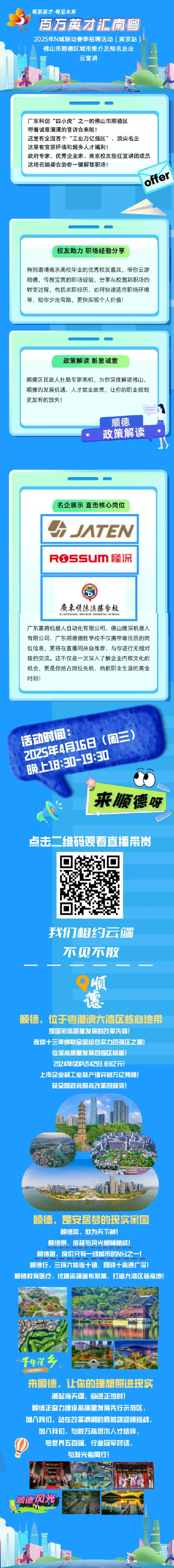 “百万英才汇南粤”2025年春季招聘会(南京站)佛山顺德名企云宣讲