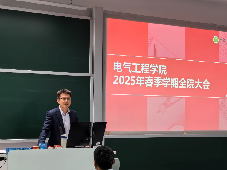 4月16日下午,2025年春季学期全院大会在四牌楼校区五四楼104教室召开,公司党政领导班子成员、全体教职工、科研助理参加会议。会议由公司党委副书记(主持工作)顾伟主持。